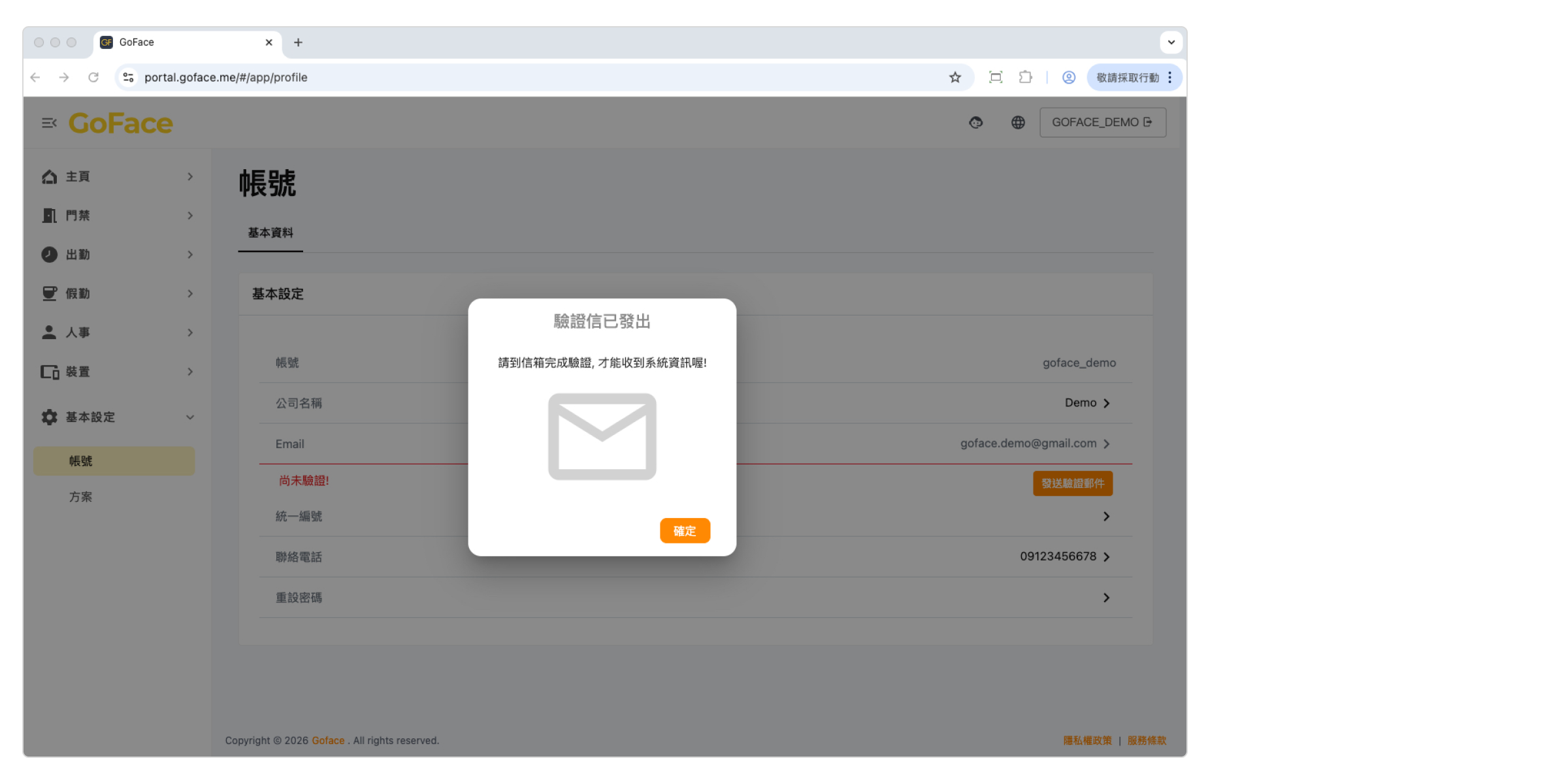 前往 [基本設定] 點擊 [發送驗證郵件]