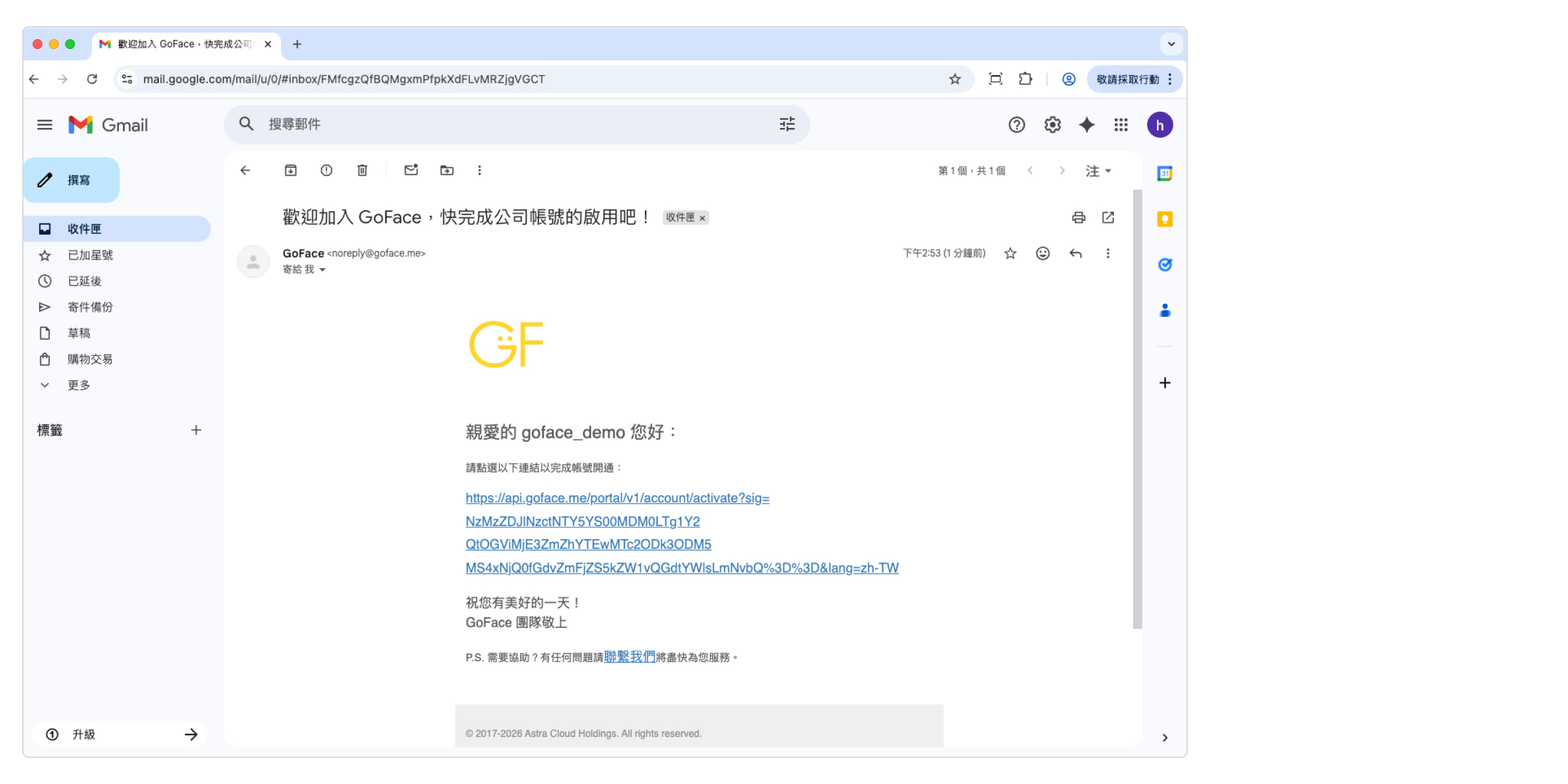 開始完成即可開始使用公司帳號不能修改將作為後續登入使用